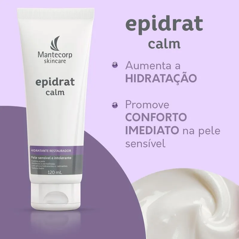 O Hidratante Epidrat Calm é um hidratante restaurador e calmante para peles sensíveis, intolerantes e sensibilizadas. Formulado com o exclusivo complexo de ativos calmantes (Complexo Sens C ) que age no aumento da tolerabilidade e na minimização dos sinais (vermelhidão, descamação e ressecamento) e sintomas (coceira, pinicação, queimação, sensação de calor e repuxamento).