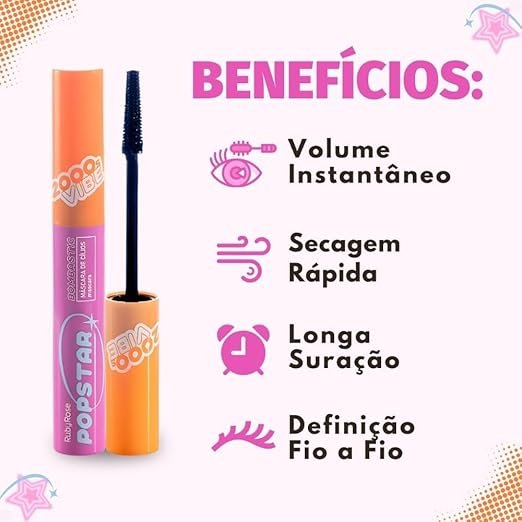 Realce seu olhar com intensidade e estilo. A Máscara de Cílios Ruby Rose Popstar HB-E2004 entrega volume, alongamento e definição para cílios mais destacados e marcantes em qualquer ocasião.